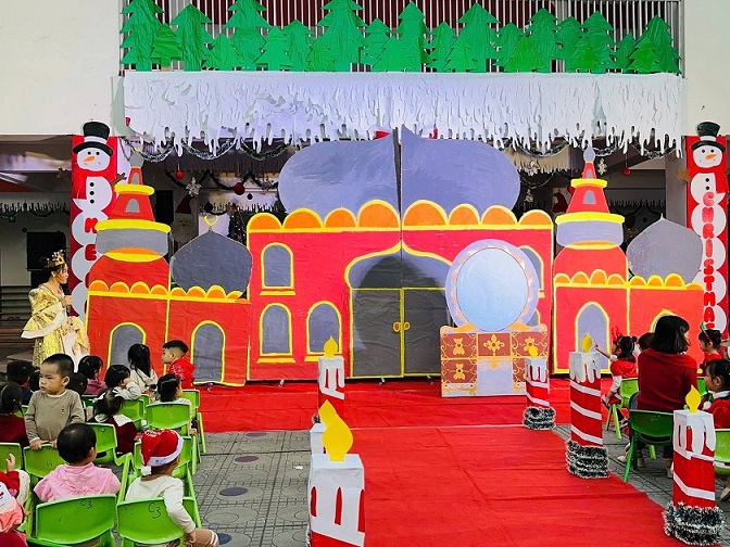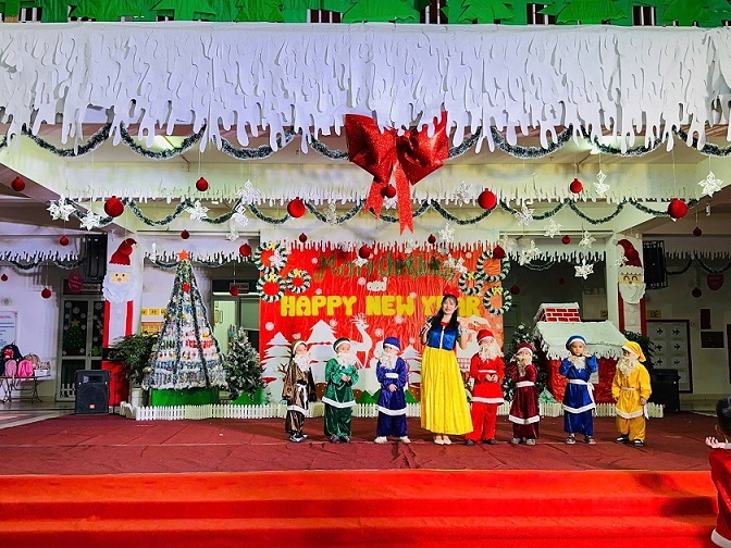 Sân trường đầy ắp tiếng cười nói rộn ràng của cô và trò chào đón đêm Noel 2026